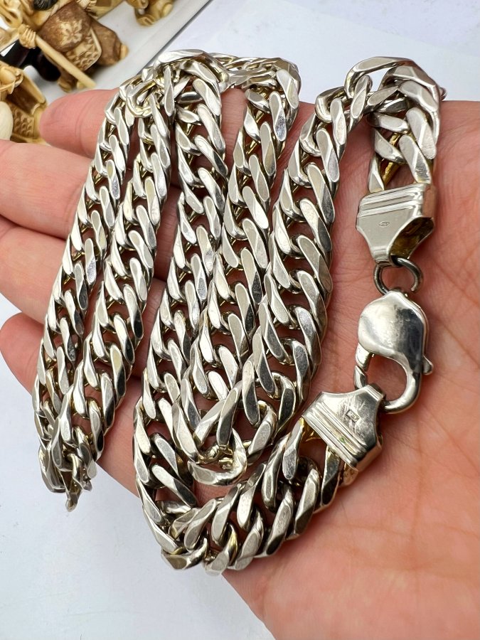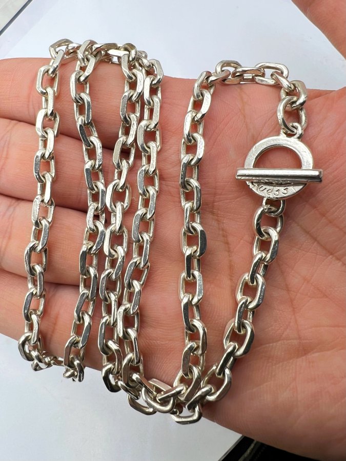 Dây chuyền bạc 925 italy phôm bự mới tinh kiểu dây khoen lật vát cạnh rất đẹp, dây dài 58c