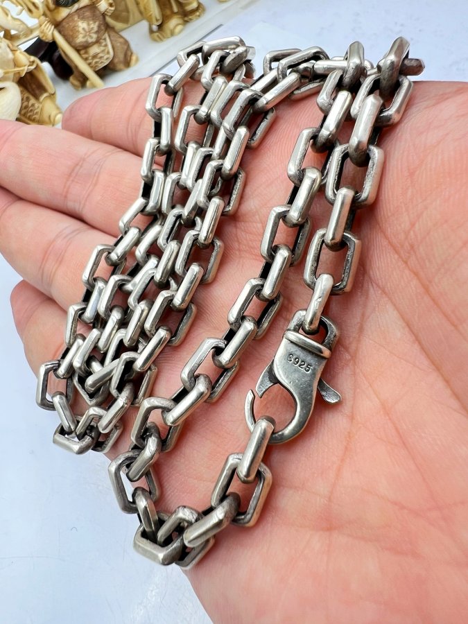 Dây chuyền bạc 925 Nhật phôm bự kiểu dây xích vuông vát cạnh rất đẹp, dây dài 56cm - bản n
