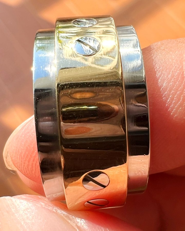 Nhẫn hiệu Carti.er hợp kim và vàng 18k đemi 2 màu mới tinh phôm bự hoa văn sắc nét rất đẹp