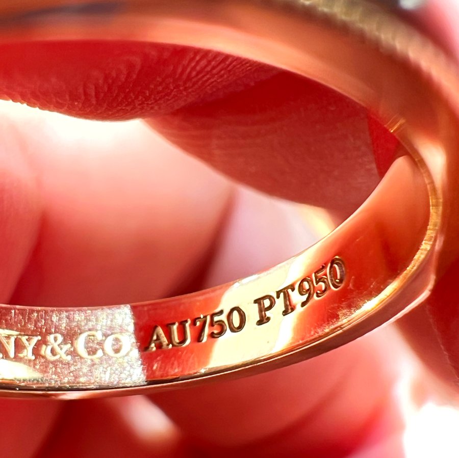 Nhẫn vàng 18k và bạch kim pt950 đemi 2 màu hiệu Tiffany mới tinh phôm tròn hoa văn rất đẹ
