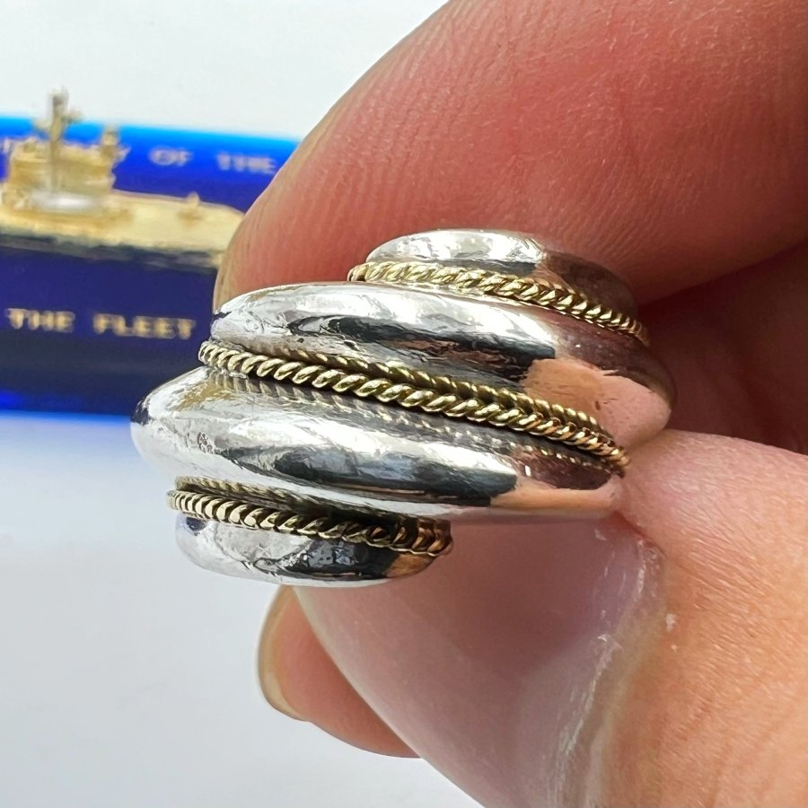 Nhẫn bạc 925 ốp vàng 18k hiệu Tiffany hoa văn sắc nét rất đẹp, size 17.5mm - ngang 12mm, n