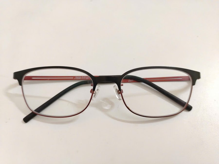 Gọng kính siêu mỏng nhẹ màu đen phối màu đỏ đun thương hiệu Zoff nổi tiếng Nhật Bản.