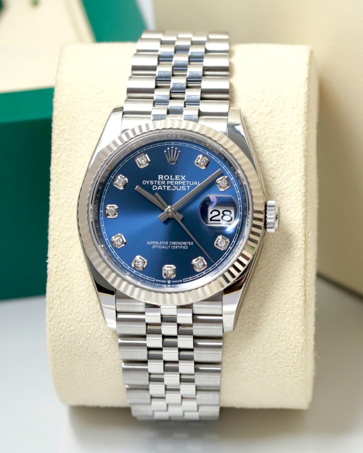 Rolex Datejust 126234 Diamonds Blue, Niềng vàng trắng 18k đúc, Size 36mm, Like new fullbox