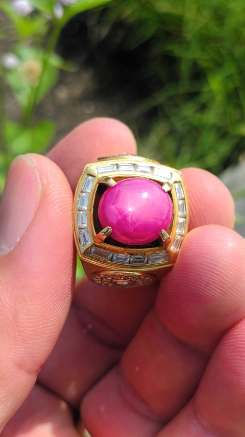 Bán nhẫn nam vàng 10k full kim cương Moissantie chủ đá ruby sao