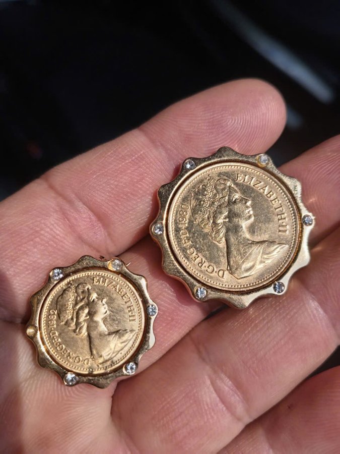 Giao lưu 2 mặt đeo kim cài đồng tiền thật