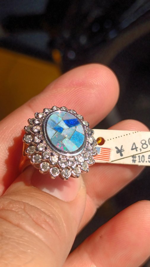 Bán nhẫn ngoại hợp kim đính đá opal mảnh tự nhiên