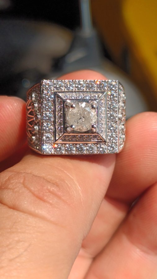 Sale nhẫn nam bạc đính kim cương tự nhiên 6ly1 đã kiểm định