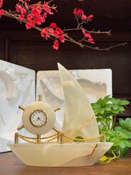Đồng Hồ Để Bàn Đá Cẩm Thạch Dáng Thuyền Buồm| Fullbox