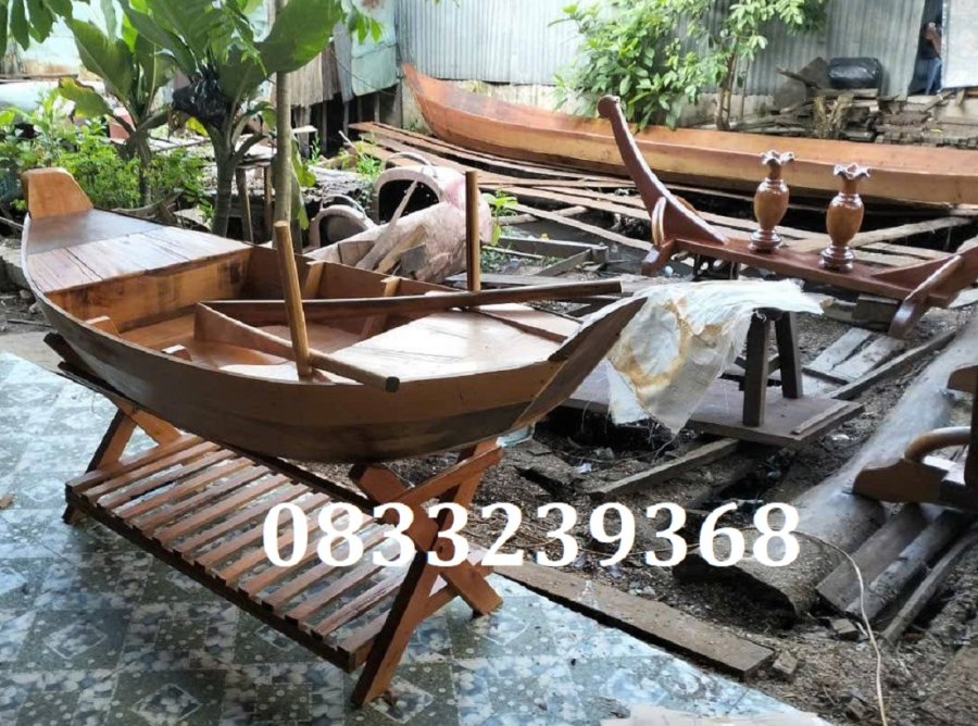 Thuyền gỗ trang trí, bàn trà/cafe, chèo hồ.