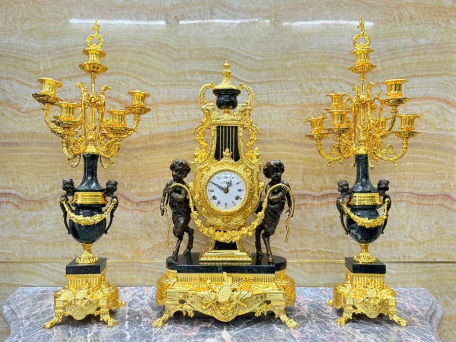 Đồng hồ tượng cổ Pháp xưa lắc kê vàng