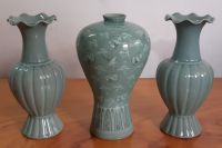 Bình sứ men xanh của Nhật vẽ sơn thủy rất đẹp.