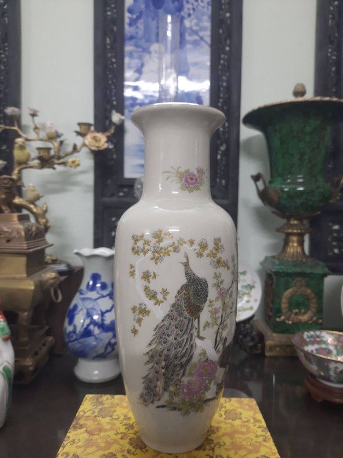 Bình hoa gốm sứ tàu màu cao 22.5cm
