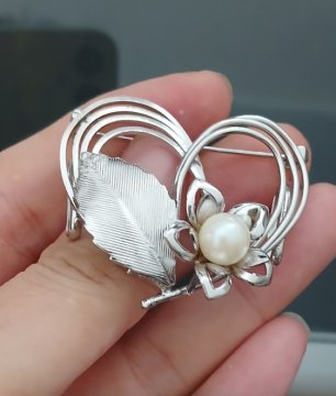 Cài áo Nhật lắc kê bạc, đính 1 viên ngọc trai Akoya 8ly bóng đẹp