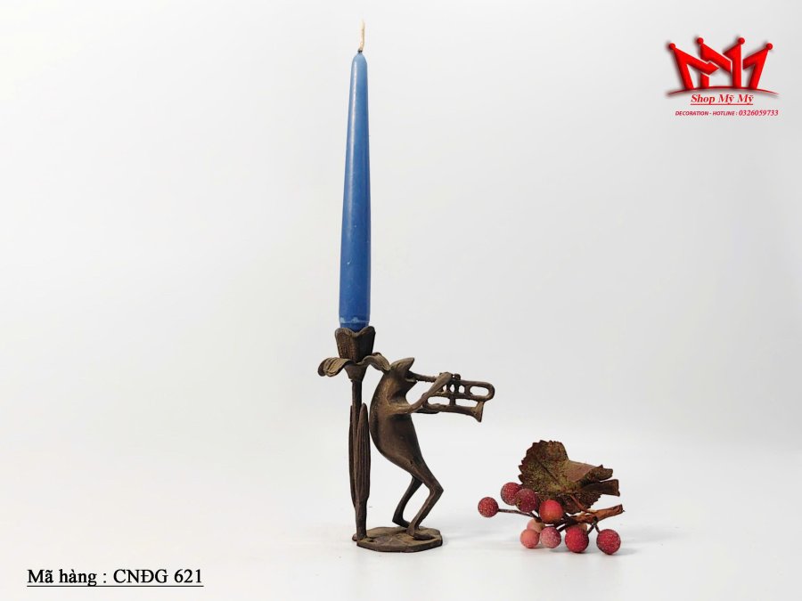 Chân nến bằng đồng hình con ếch đang chơi kèn độc đáo