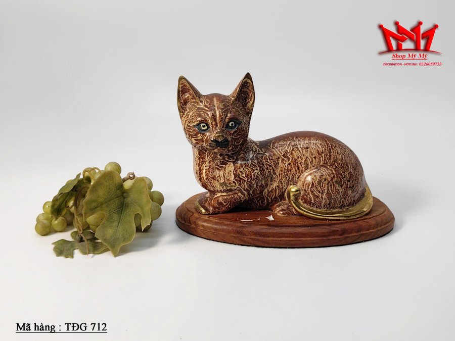 Tượng mèo mắt xanh bằng đồng thau cổ điển của Áo.