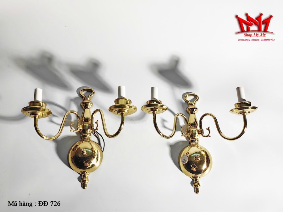 Đèn treo tường 2 tay bằng đồng thau sáng bóng cổ điển