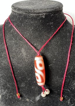 Hạt Thiên Châu ( Dzi ) cổ xưa Dài 3,5cm Phong hóa mạnh lỗ khoan xéo