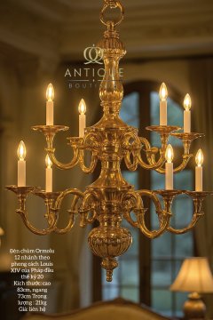Đèn chùm Ormolu 12 nhánh theo phong cách Louis XIV của Pháp đầu thế kỷ 20