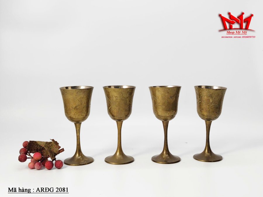 Bộ 4 ly ******* vang mạ vàng khắc họa tiết nổi bật