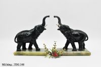 Cặp voi trang trí để bàn được làm bằng kim loại với đế đá xanh.