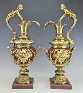 Cặp Bình Empire Thiên thần bronze mạ vàng với đá đỏ Pháp made 67cm.
