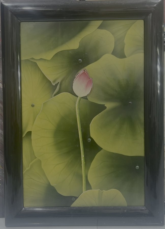 Tranh Sơn mài xưa Đầm Sen Xuân Kt 40cm x 60cm chưa khung Giá 1999k