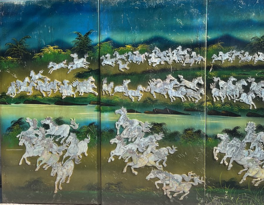 Bách Tuấn Đồ Tranh sơn mài cẩn ốc Kt 80cm x 1m60