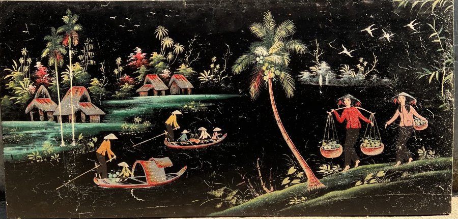 Tranh sơn mài trên gỗ Quê Hương Thanh Bình Kt 40cm x 80cm