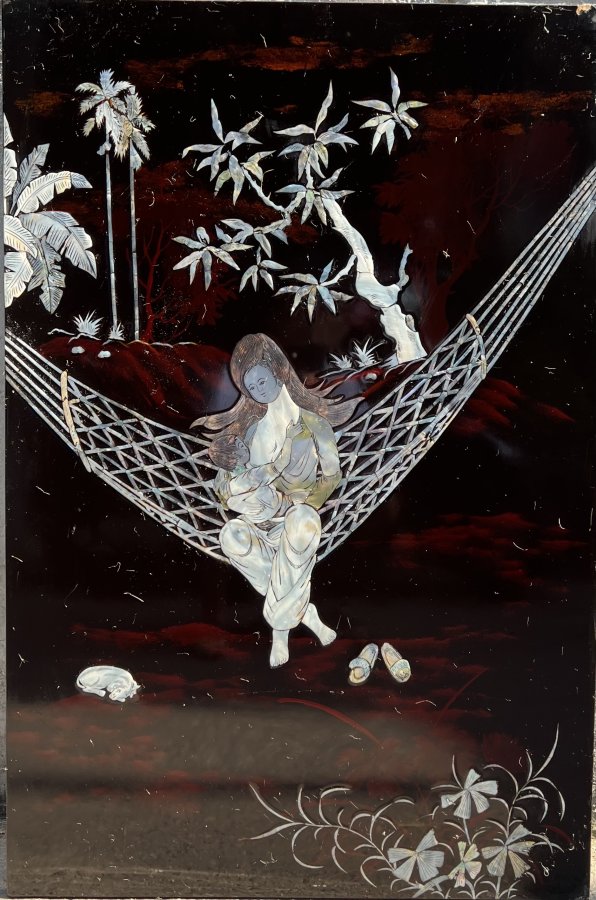 Tranh sơn mài cẩn ốc xưa Tình Mẫu Tử Kt 60cm x 90cm