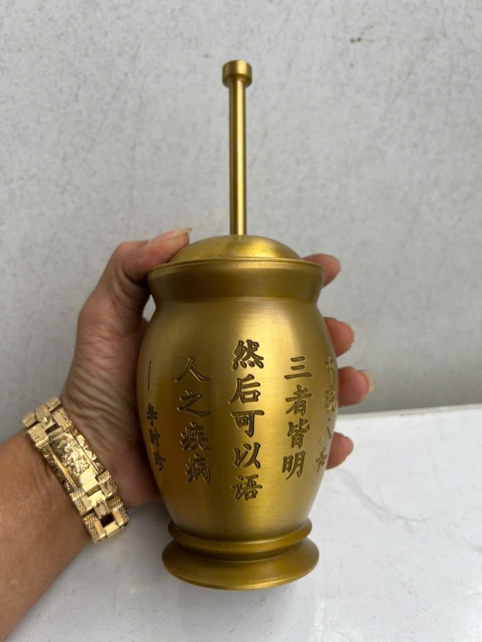 CỐI GIÃ. HOA ĐÀ THẦN Y Tích chữ xưa. đồng nguyên chất, nặng 1kg Bao sử dụng tốt.