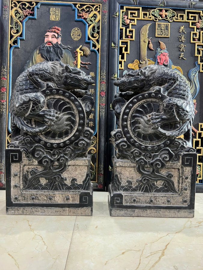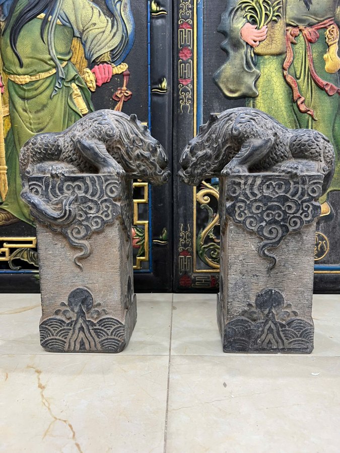 Cặp kỳ lân bằng đá. Nặng khoảng 1 tạ.