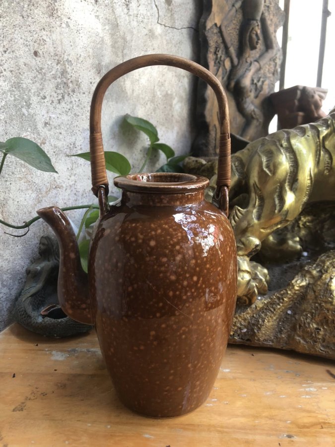 • Ấm sứ giả cổ. • Màu sắc: Màu da lươn đặc trưng. • Tình trạng: Sử dụng tốt, nắp và thân n