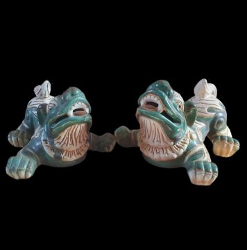 Cặp nghê men lĩnh lam.Cao 25cm*dài 40cm.