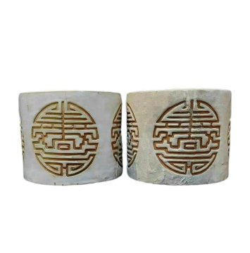 Cặp chậu gốm Thành Lễ men trắng ta,4 chữ Thọ.Cao 18,8cm*đkm 22,5cm.Đáy nẻ lỗi lò đã gia cố