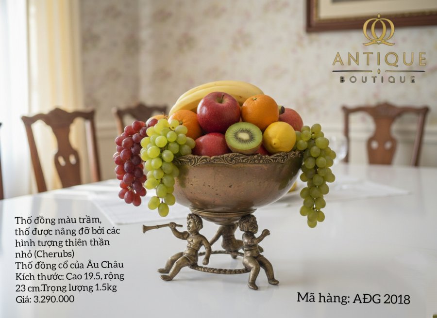 Thố đồng màu trầm, thố được nâng đỡ bởi các hình tượng thiên thần nhỏ (Cherubs)