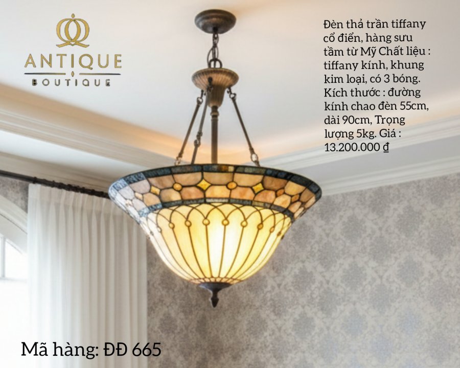 Đèn thả trần tiffany cổ điển. Kính ghép nghệ thuật. Mã hàng: ĐĐ 665