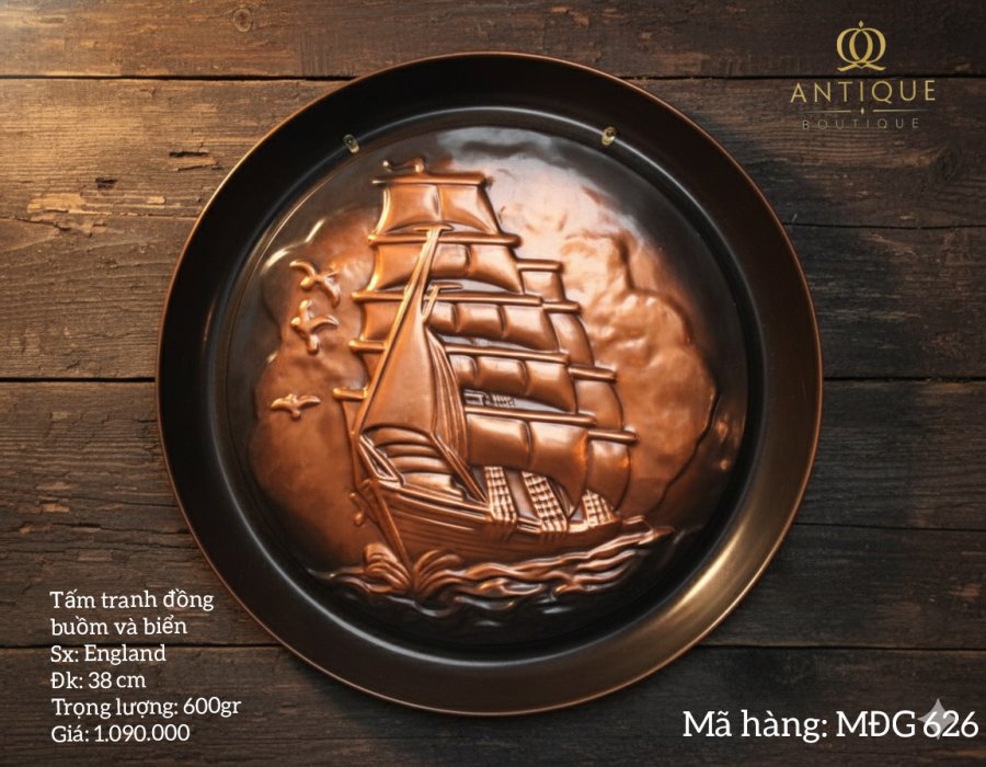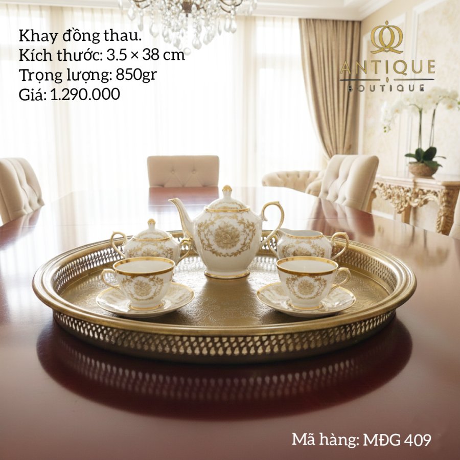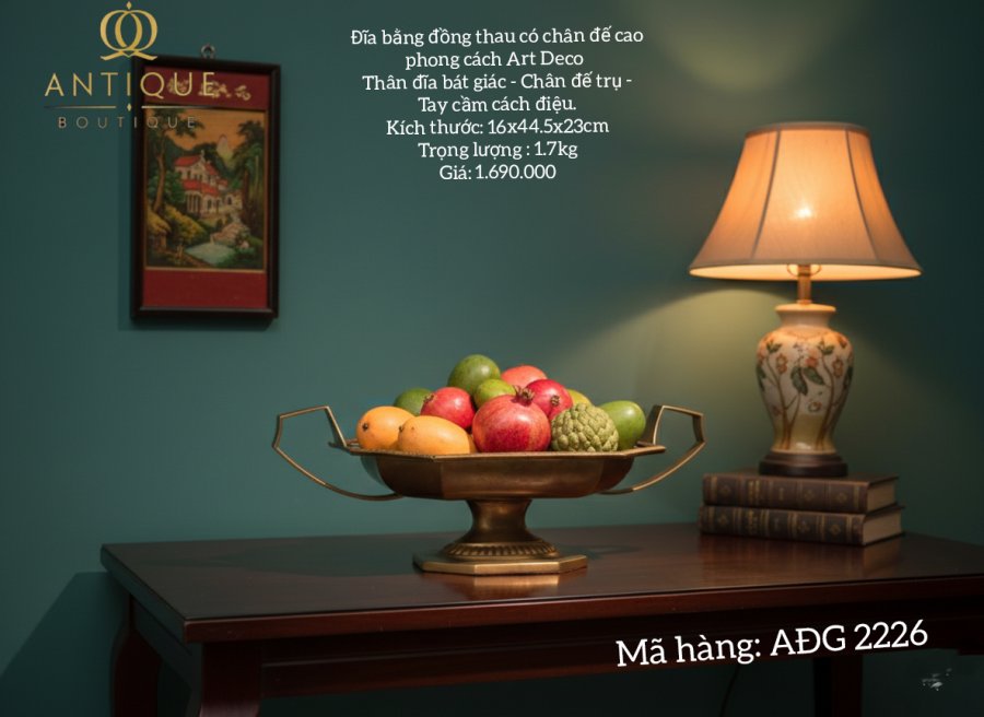 Đĩa bằng đồng thau hình bát giác có chân đế