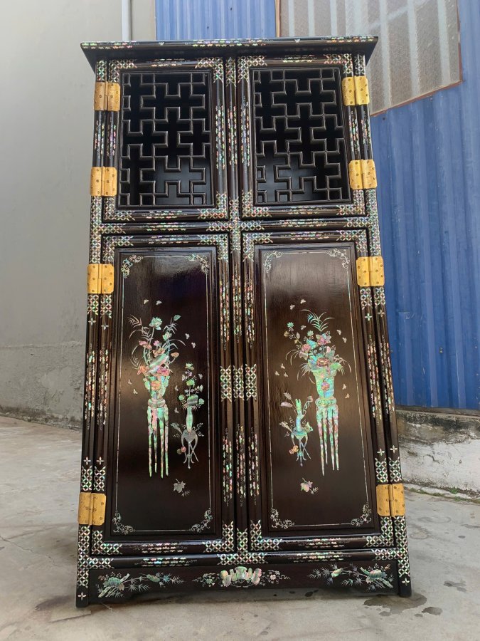 Tỉ áo 4 cánh 3 buồng gỗ gụ khảm ốc