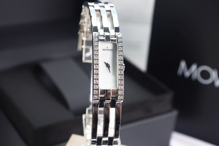 ĐH Nữ MOVADO Lắc tay, mặt Xà Cừ, đính 28 viên Kim Cương thiên nhiên ( Viên Lớn ) Fullbox