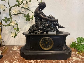 Đồng Hồ Để Bàn bằng đồng và đá cẩm thạch đưn Cổ Tượng Cô Gái _ PHÁP ( 1870). Nguyên Zin