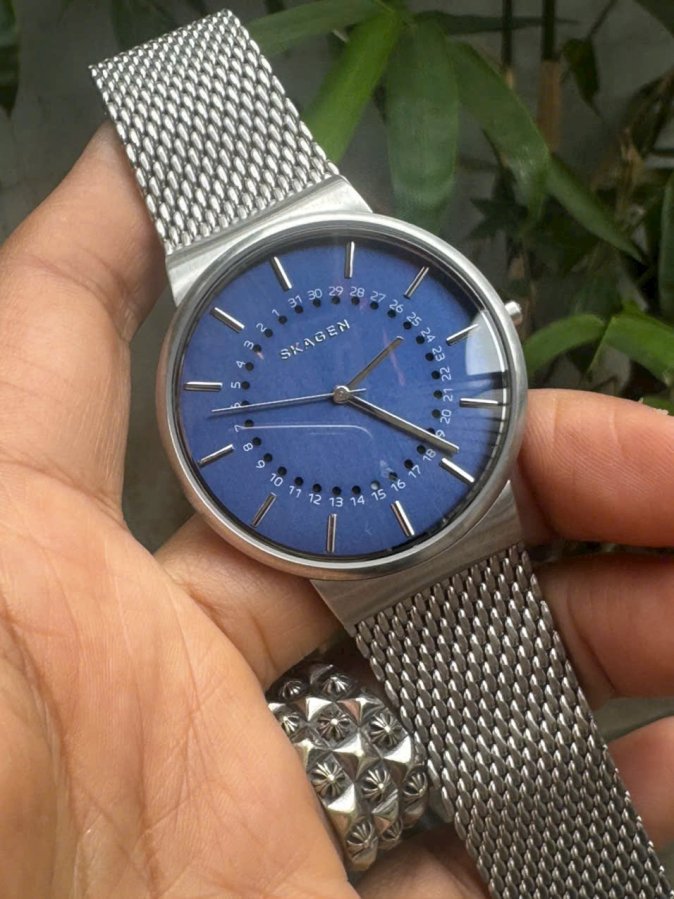 SKAGEN -Japan Made - xịn - Size: 40 chưa núm - máy Nhật - Kính thường- day zin