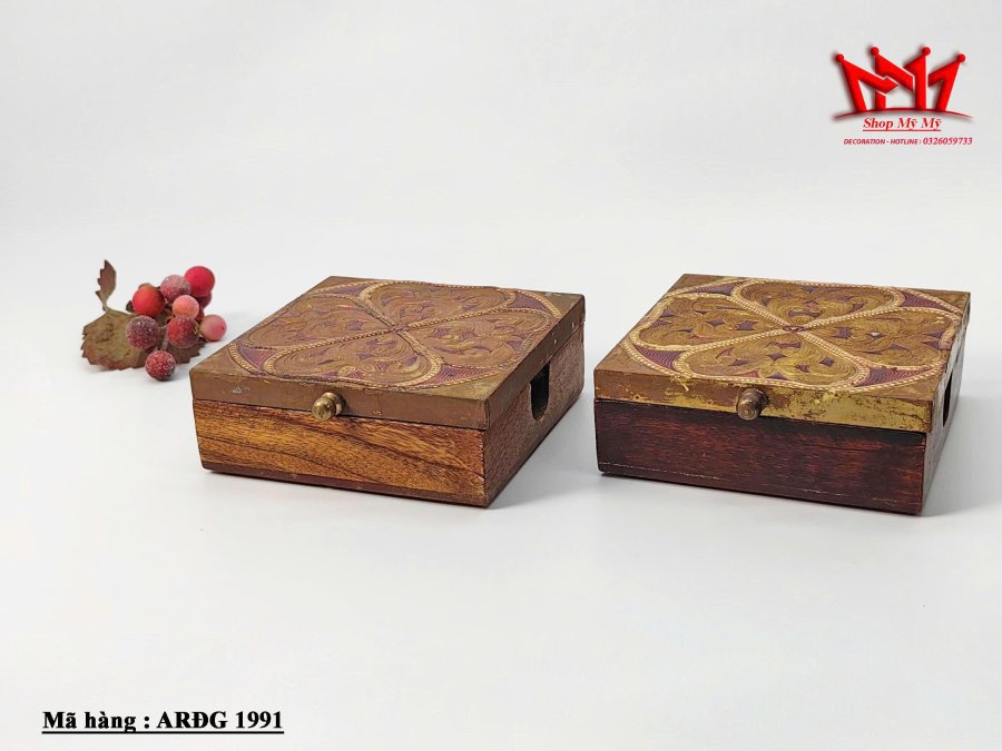 Hộp đựng trang sức bằng đồng và gỗ được chạm khắc thủ công