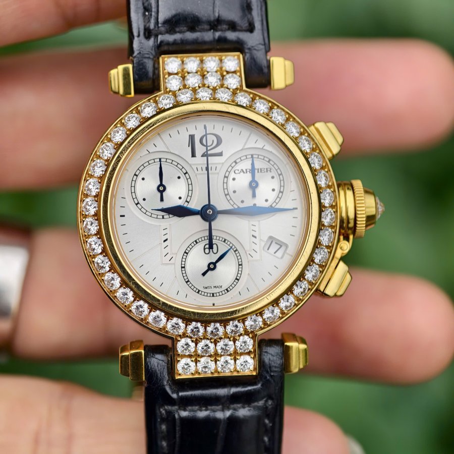 Đồng hồ CARTIER Pasha de Cartier Joaillerie Chronograph vàng 18k WJ12061G 2882