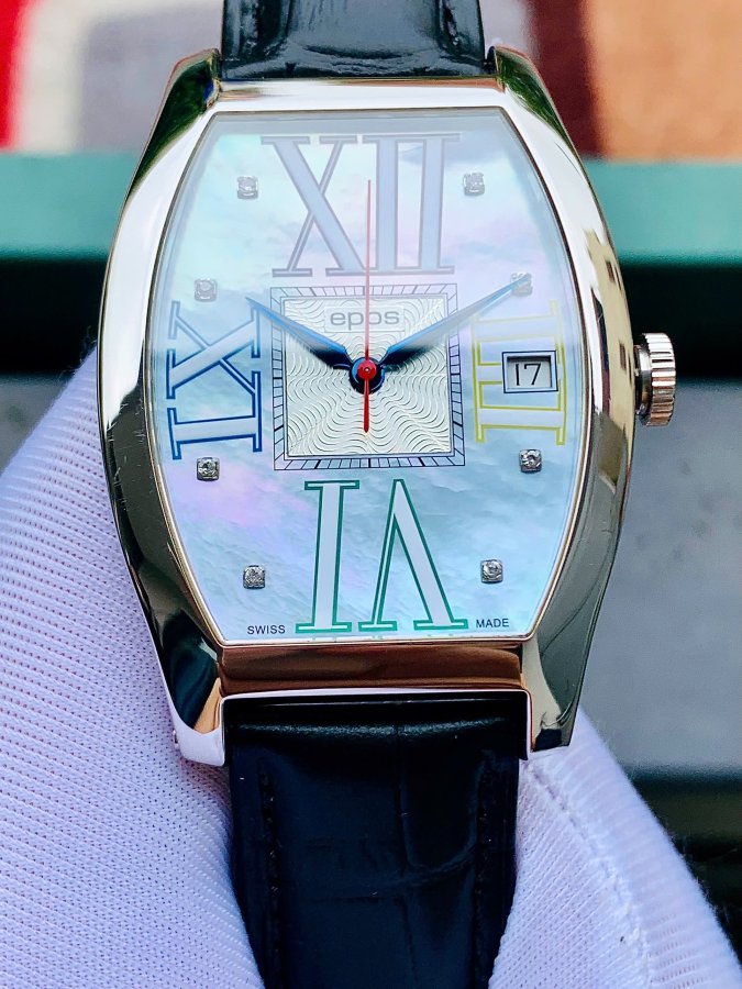Epos Elegance Tonneau White MOP Dial Diamond 3359 - Lướt Đẹp 98%, Hộp Gỗ, Sổ, Dây Da Zin