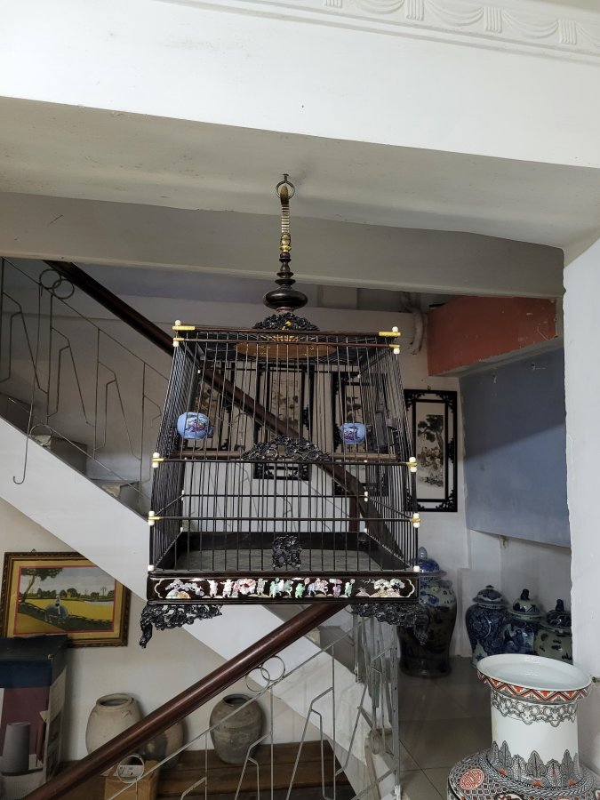 Lồng chim chào mào bằng gỗ mun cẩn cừ