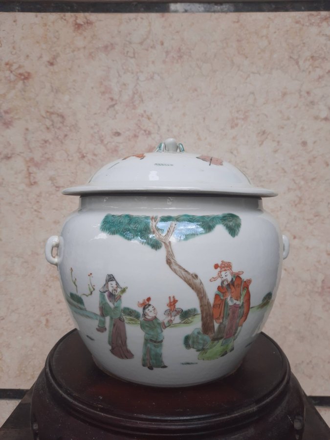 Lọ hoa gốm tàu màu họa tiết " Quần tiên dạ hội"