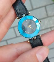 Gianni Accardi - Đồng hồ nữ hàng hiệu, Viền xanh, mặt đen đính 1 viên kim cương