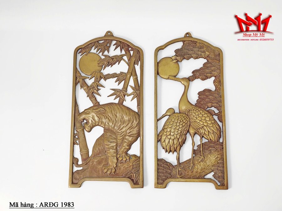 Cặp phù điều đồng trang trí treo tường hình con hổ và cặp hạc