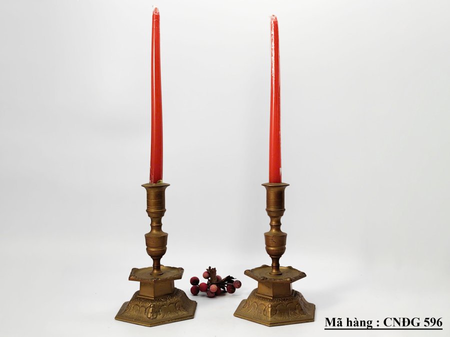 Cặp đế nến bằng đồng hình lục giác của Thụy Điển.