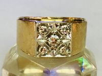 Kính phố vàng 10k. 1971 Hột đỏ huyết trơn logo Masonic dát vàng tuyệt đẹp. Size:19